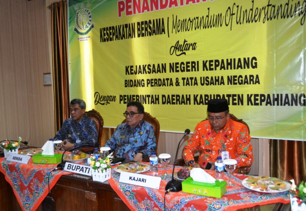 BengkuluVoice.com, Kepahiang – Pemerintah Kabupaten (Pemkab) Kepahiang menjalin kerja sama dengan Kejaksaan Negeri (Kejari) Kepahiang dalam penanganan Hukum Bidang Perdata dan Tata Usaha Negara (Datun).