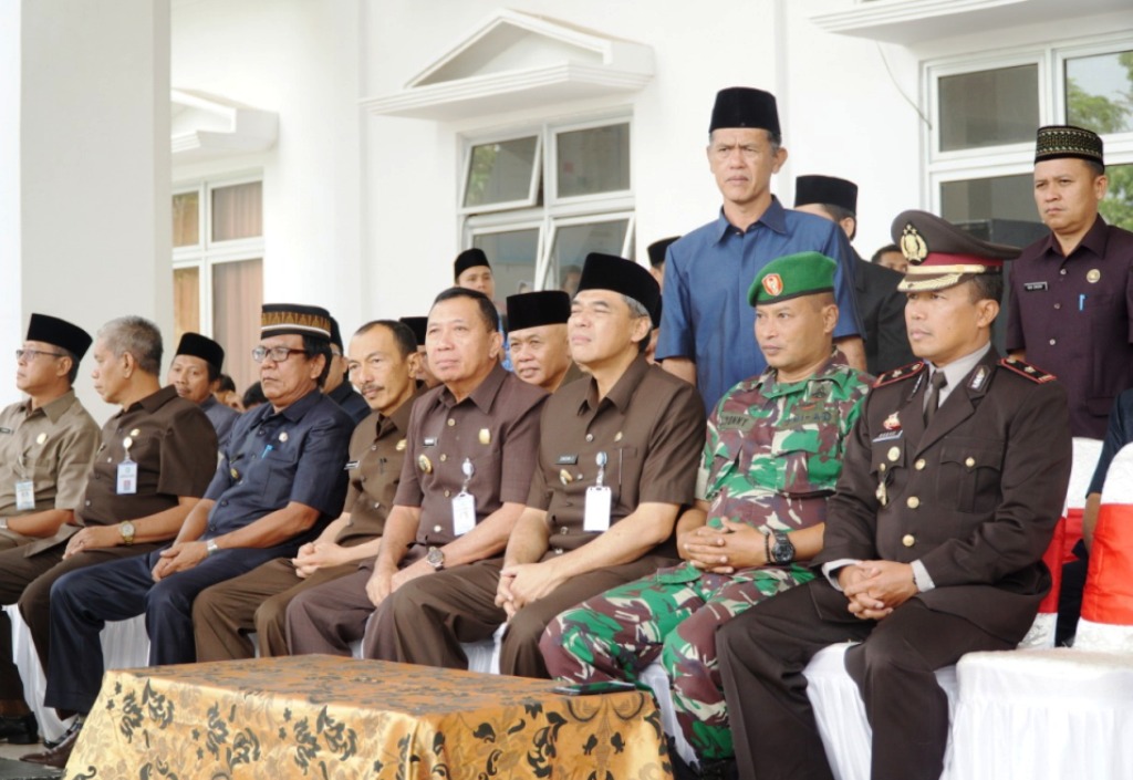 Bupati Kepahiang Dr. Ir. Hidayattullah Sjahid, MM. IPU yang bertindak sebagai Inspektur Upacara membacakan Sambutan Menteri Komunikasi dan Informatika Republik Indonesia, Rudiantara.