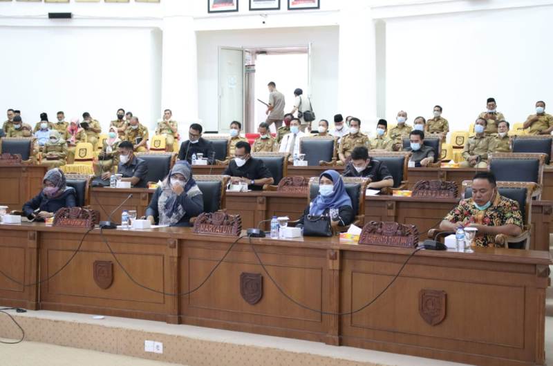 Selanjutnya ia memaparkan pendapatan daerah pada APBD Perubahan tahun 2020 sebesar Rp754.061.901.016,98 dengan realisasi sebesar Rp723.525.660.820,14 atau 95,95 persen. Kemudian Belanja Daerah pada APBD 2020 setelah perubahan sebesar Rp864.246.570.901,22.