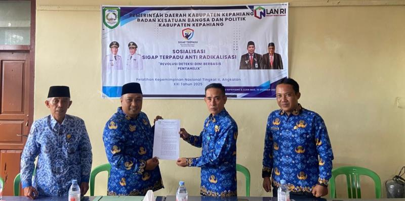 Dinilai akan pentingnya upaya tersebut, Kepala Kesbangpol Kepahiang Musi Dayan S.Si selaku Peserta Diklat Kepemimpinan Tingkat II PIM II) yang diselenggarakan di Palembang, mensosialisasikan sistem sigap terpadu anti radikalisasi ke kecamatan – kecamatan di Kepahiang.