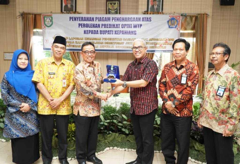 Penghargaan tersebut atas keberhasilan Pemkab Kepahiang dalam menyusun dan menyajikan Laporan Keuangan Daerah tahun 2018 dengan capaian Wajar Tanpa Pengecualian (WTP).
