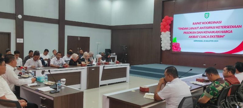 BengkuluVoice.com, Kepahiang – Sekda Kepahiang Hartono memimpin rapat antisipasi ketersedian pasokan dan kenaikan harga akibat cuaca eksrim, Rabu (28/08/2024).
